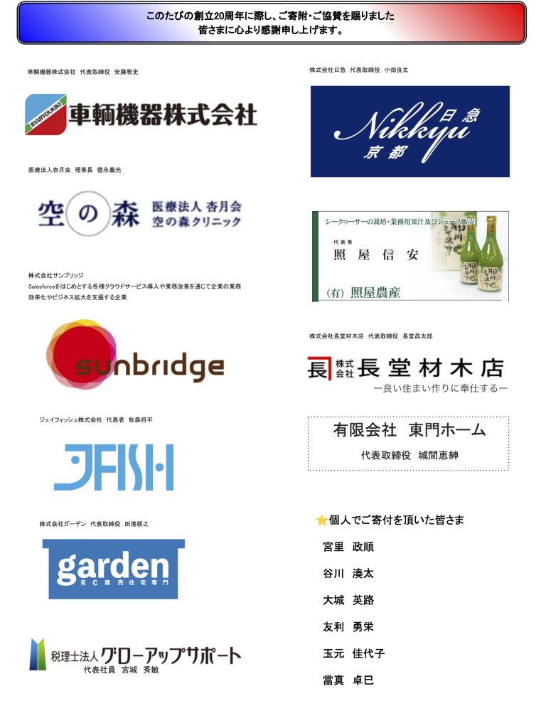 このたびの創立20周年に際し、ご寄附・ご協賛を賜りました皆さまに心より感謝申し上げます。